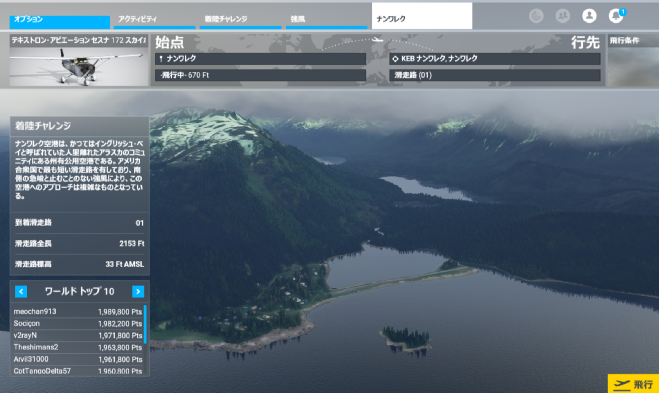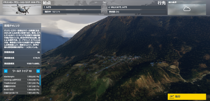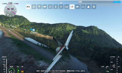 できるのですが、AとBの中間にWAYPOINTを設定したい場合、その方法がみつからない。 WEBで方法を検索したところ機内コックピットのMFD(マルチ フライト ディスプレイ)を 直接操作して必要データを手入力作成する方法がのっていたのでそれを参考にしながら習得し てみた。 日本語版MSFSとはいえ同ディスプレイの操作メニュー表示は英語表記のままなので何と書い てあるのか調べ、どこを押すと何が出て何が設定できるのかを把握することがから始まったが、 試行錯誤の結果なんとか最低限の設定はできるようになりました。 フライトプランの作成例と入力方法 ヨーロッパアルプスの名峰モンブランを横に眺めながらの絶景フライトプランをたてて みました。 フランスのサン・テグジュペリ空港を離陸しクールジュヴェルというスキーリゾートにある 山岳飛行場の上空付近まで到達したら左に旋回してイタリアのジェノバ空港へ向いそこに 着陸します。 入力データ Origin(離陸)空港 LFLL サン・テグジュペリ (フランス リヨン地方) Enroute WayPoint(経由地点) LFLJ クールジュヴェル飛行場(フランスアルプス) Destination(着陸)空港 LSGG ジェノバ(イタリア北西部都市) 1,ワールドマップ画面で2.サン・テグジュペリ空港を出発地にして離陸待機画面になったら コクピットビューにして画面を押し下げてMFDパネルのボタン類を直接操作できるように します。 2.右のMFDボタンを押すと左に出る各メニューの中のFlight Planを押すと表示される 3つのメニューの一番上のadd Originを押す ![]() 3.表示された画面のデータ入力箇所にLFLLと入力しEnter押すとMAPの自機マークの ところに空港記号の入った黒い四角が表示される (注意:PCのキーボードからではなく画面に表示されたテンキーを使いアルファベットを 入力する) 4. 次のAdd Enroute WayPointを押すと表示される画面の入力箇所にLFLJと入力し Enterを押すと山岳飛行場のところに空港記号の入った黒い四角と赤い線で飛行ルートが 表示される ![]() 5,これ以上WayPointを追加しない場合は、Doneを押すとWayPointが確定する。 ![]() 6.メニューの最後に出てるAdd Destinationを押し、表示される画面の入力箇所にLSGG と入力しEnterを押す。 ジェノバ空港のところに空港記号の入った黒い四角と白い線で飛行ルートが表示される ![]() 7.データ入力完了後の最終画面がコレ↓です 中央のMapが出ているディスプレイ及び真下の操作パネルがMFD装置です。 Mapにはフライトプランに基づく飛行ルートが表示されている。 操作パネル入力した空港記号の後にはその方位と距離が表示されている。 ![]() それではこの飛行計画によりフライトしてみます。 ↓サン・テグジュペリ空港を離陸します。 ![]() 離陸したら、方位104に機体を向けつつ高度を稼ぎます。途中 3千M近い高山の頂上を 飛び越えなければならない箇所があるため高度1万フィートまで上ってから、オートパイロット ONにしALT保持モードとNAV1モードをかけると後は自動操縦に任せて風景を堪能します。 ![]() ↑クールジュヴェルに向かって飛行中、画面右隅にモンブランがみえます。 ![]() ↑クールジュヴェルの手前で自動操縦で機体が左旋回を始めると正面にモンブランをみ ながらの旋回となる ![]() ↑ジェノバに向かうルートはモンブランにより近づくのでよく見えます。 ![]() ![]() ![]() ![]() ![]() ![]() ↑着陸 自動操縦を解除しジェノバ空港に向かって高度を下げていき、いったん右の海の方へ向かって 海上をしばらく飛行したら途中で反転しファイナルアプローチに入っていきます。 今回は滑走路に対してやや左寄りの接近になってしまいましたが、操縦桿による機体コント ロールとスロットル開閉によるスピードコントロールで機体が滑走路に正対するように操縦 します。 失速しない程度にできるだけスピードを抑え機体を滑走路のセンターラインにのせることが できれば、後は静かに着地するだけです。 着陸後は速やかに小型機の駐機エリアまでタキシングして、駐機スペースで停止したら エンジンとめます。 モンブランの追加Sショット ![]() ![]() ![]() ![]() 着陸チャレンジ「テンジン・ヒラリー空港」 標題の空港が2025年11月7日(金)NHKBSで午後8時から関東エリアで放映された番組 「弾丸!空港トンボがえりツアー 新(3)ネパール テンジン・ヒラリー空港」 で紹介されてました。 MSFS2020では、アクティビティの中の着陸チャレンジで「ルクア空港」(メニュー ようこそ> アクティビティ>着陸チャレンジ>壮大>ルクラ VNLK ネパール)となっている空港で、山に囲 まれたルクア町中の猫の額程の平坦地に作られた滑走路は傾斜があり幅が狭く、距離も極端に 短いため世界有数の離着陸困難空港の一つに数えられている。 番組中の説明でも、特別な飛行訓練等を相当に積んだパイロットでないとネパール航空当局の 離着陸許可がおりないとのことです。 ![]() それでは着陸にチャレンジですが、アクティビティメニューの着陸チャレンジからプレイすると 一時停止機能が無効となっており、スク